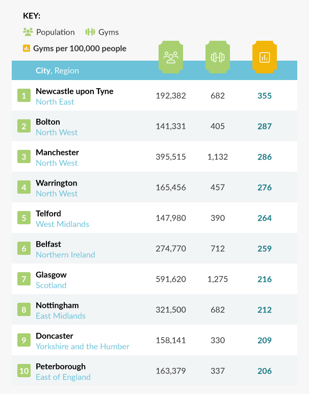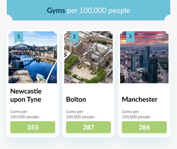1. Newcastle upon Tyne - 355 gyms per 100,000 people